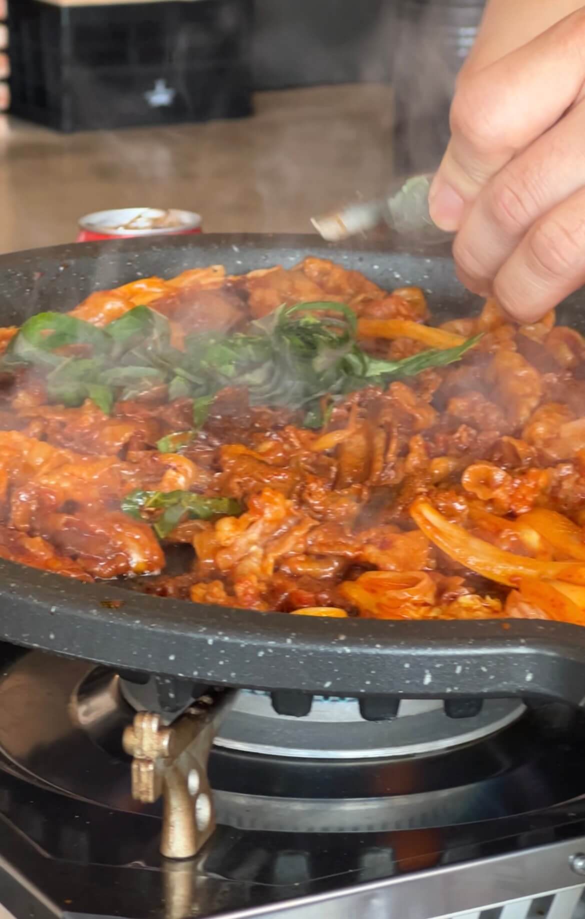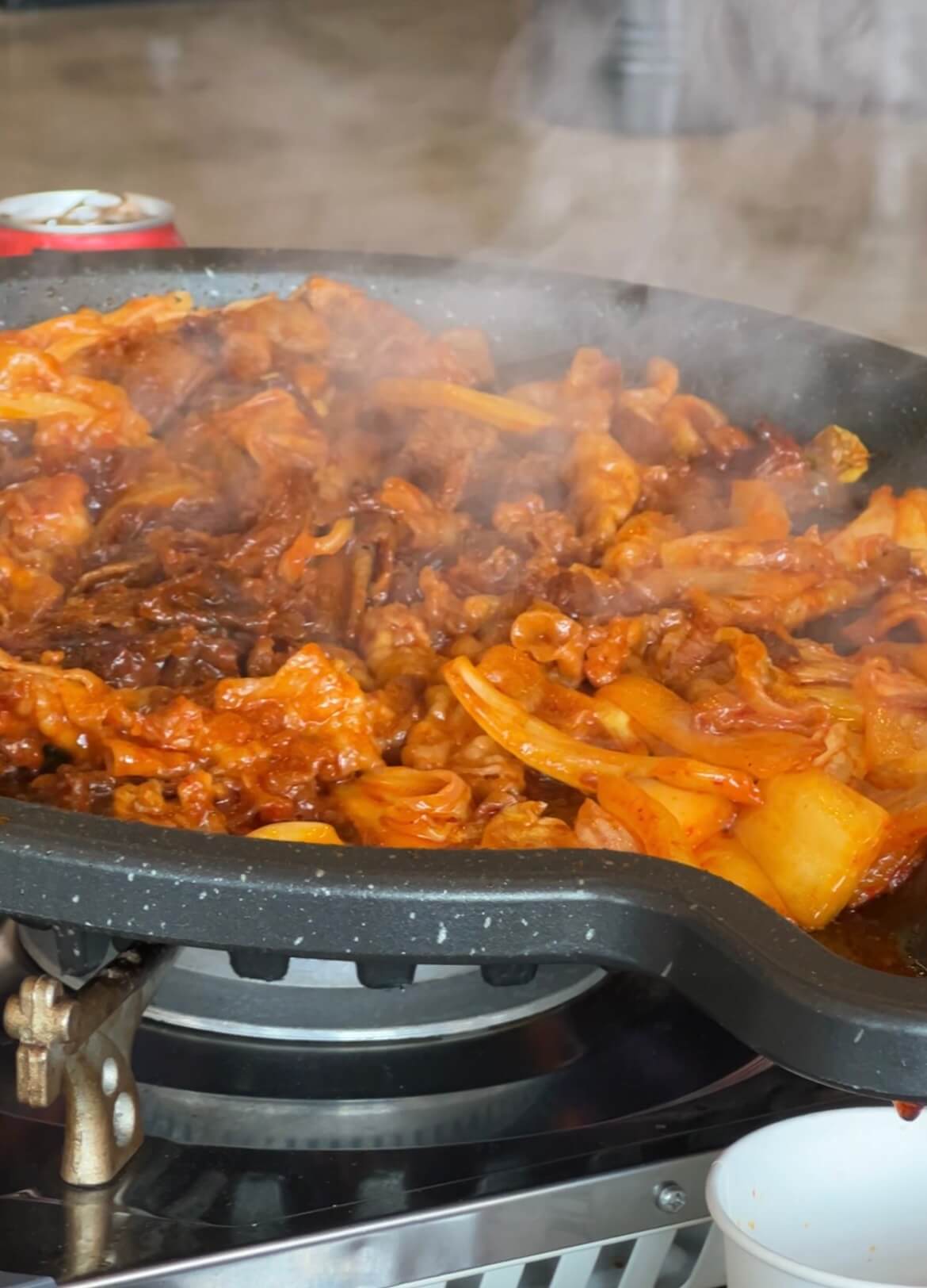 저희가 시킨 메뉴는 모듬한판, 양념대패 한판, 김치찌개